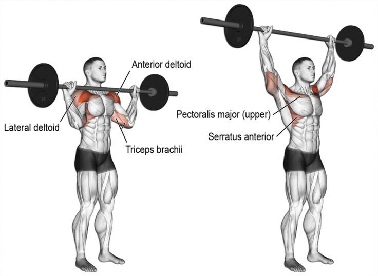 - Убедитесь, что вы не опускаете штангу полностью вниз, иначе вы потеряете напряжение в дельтовидных мышцах