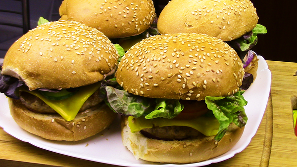 е. не выбиваясь из строя, если можно так сказать. Помните, что нарезка должны быть очень тонкой, а сыр (для такого вида гамбургера, как чизбургер) надо класть сразу на горячую котлету. Добавляйте разные овощи!