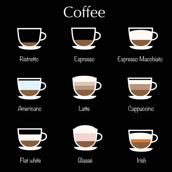 Как видно из приведенных выше соотношений, во всех трех кофе используются одни и те же ингредиенты, но слои уложены по-разному.
