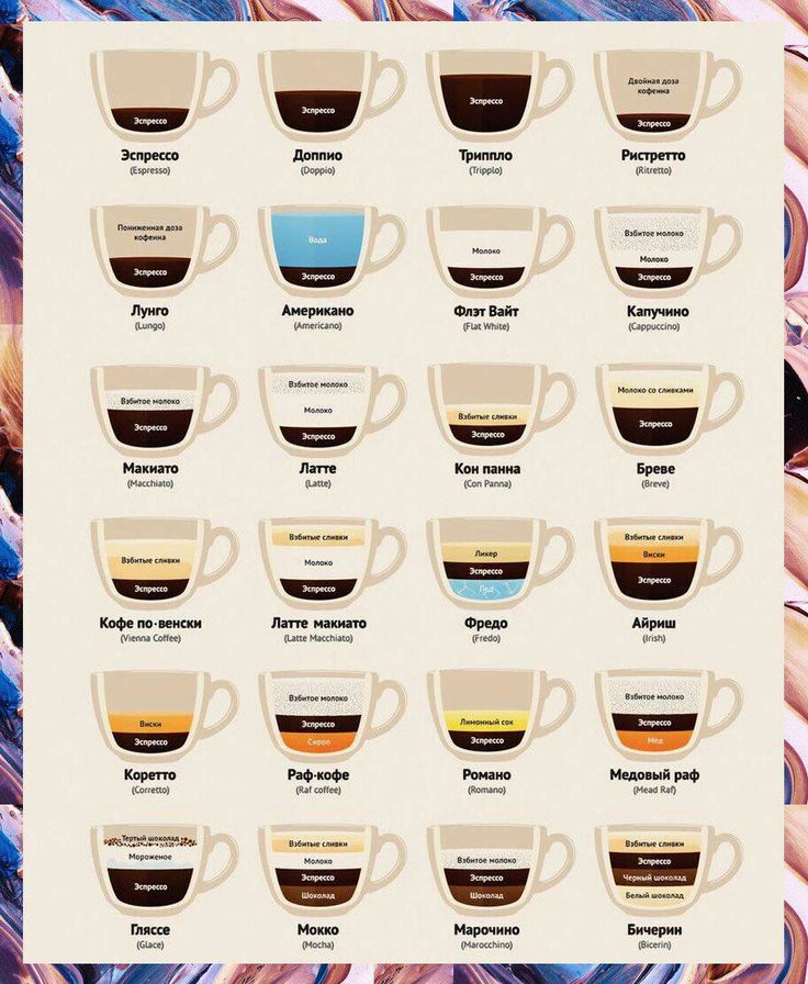 В чем различие между самыми популярными видами кофе: латте, капучино, эспрессо и американо? Какой из них вкуснее, крепче и содержит меньше кофеина?