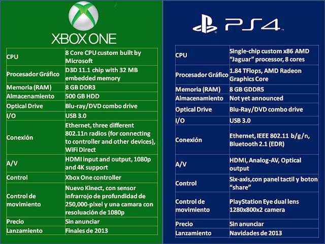 Чималі відмінності у приставок є і в їх технічних характеристиках. xBox One заснована на 8-ядерному процесорі AMD Jaguar з частотою 1,6 ГГц, PS4 коштує той же чіпсет, н з частотою 1,84 ГГц.