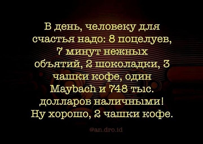 Обычно на данный вопрос мужчины, а в последнее время и все большее число женщин заявляют, что для полного счастья им не хватает денег.