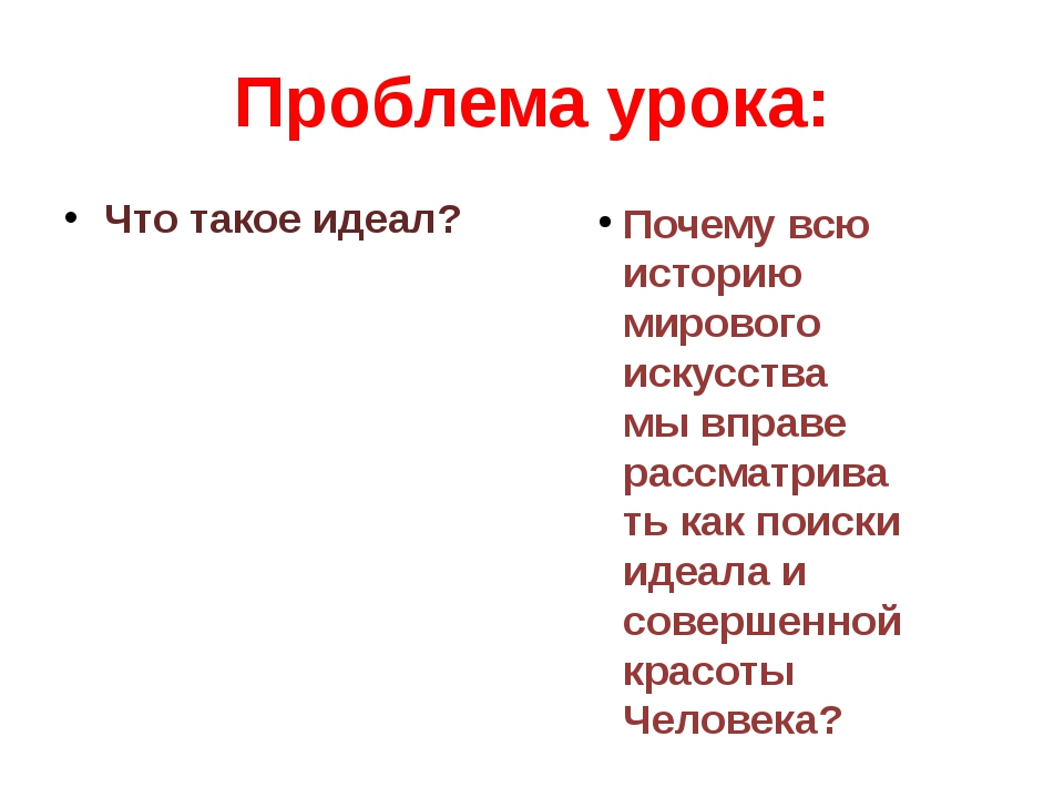 Во всем мире мыслящие люди стремились к каким-то идеалам: идеал Бога, совершенного человека, совершенного государства, идеалы служения власти, народу и т. д.