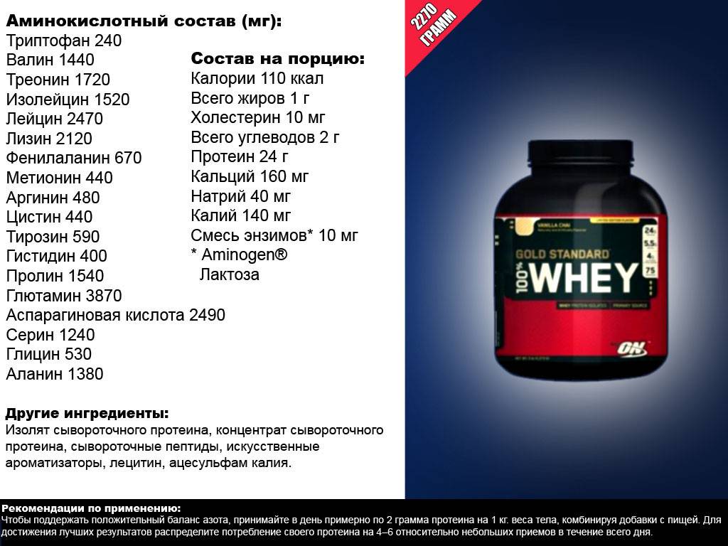 Концентрат сывороточного белка содержит немного жиров и углеводов. Имеет максимальную скорость усвоения, по сравнению с остальными продуктами. Кроме того, он на четверть состоит из аминокислот БЦА. Это позволяет использовать данный вид протеина после тренировок, когда мышцам необходим строительный материал для восстановления. Чем чище сыворотка, тем выше ее стоимость.
