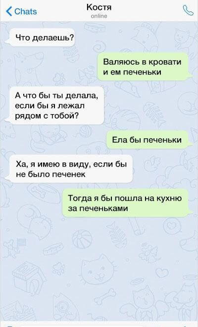 Когда они пишут, они на самом деле мало говорятИтак, мы установили, что чат продолжается, либо нет упоминания о дате, либо всегда есть причина для отмены / переноса, и они могли или не могли делиться повторно. Еще один тревожный сигнал — это когда разговор никуда не денется, но они все еще упорствуют в этом. Просто они регулярно сообщают новости о своем дне и надеются, что у вас все хорошо, пока они не исчерпают ваше последнее терпение.