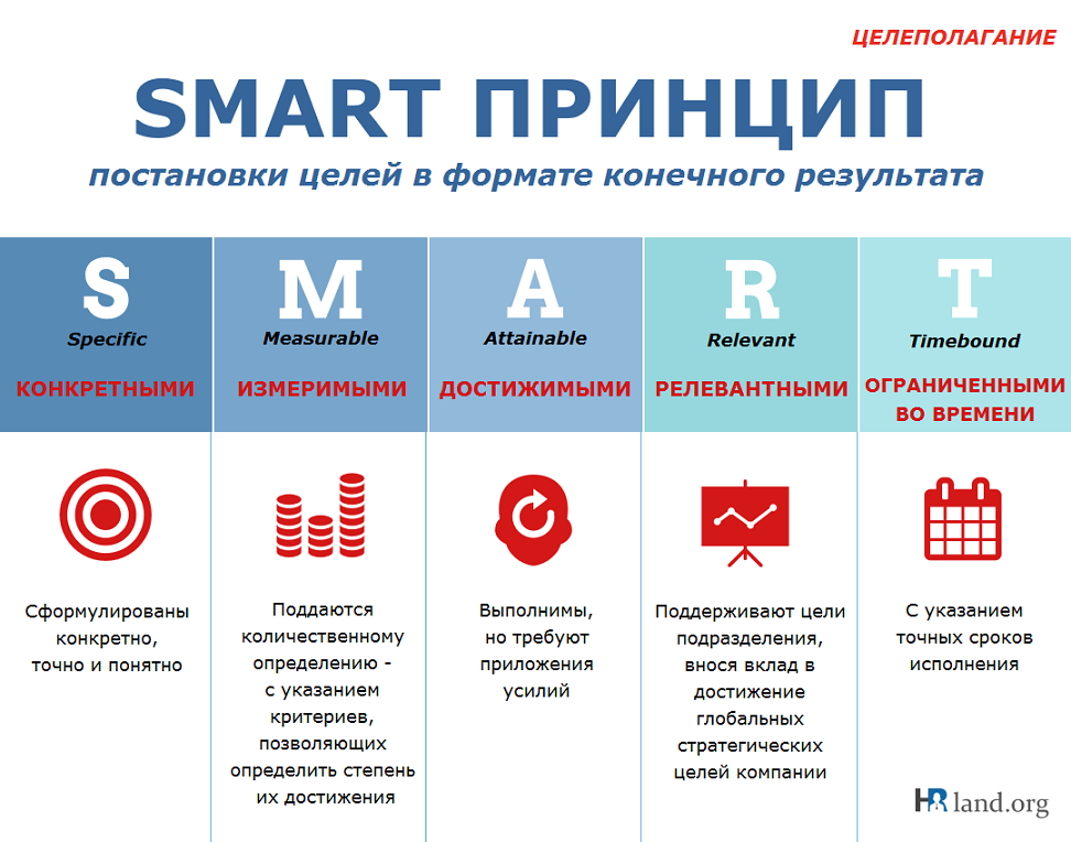 После Друкера метод упаковали в запоминающуюся обвёртку с аббревиатурой S.M.A.R.T (с англ. – умный) по пяти базовым критериям.
