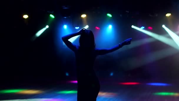 sommer, nacht, party, in die strahlen der scheinwerfer die umrisse von frauenhänden zu sehen, langsam bewegen, tanzen — disco girl stock-videos und b-roll-filmmaterial Лето, ночь, вечеринка, in die Strahlen der Scheinwerfer die.