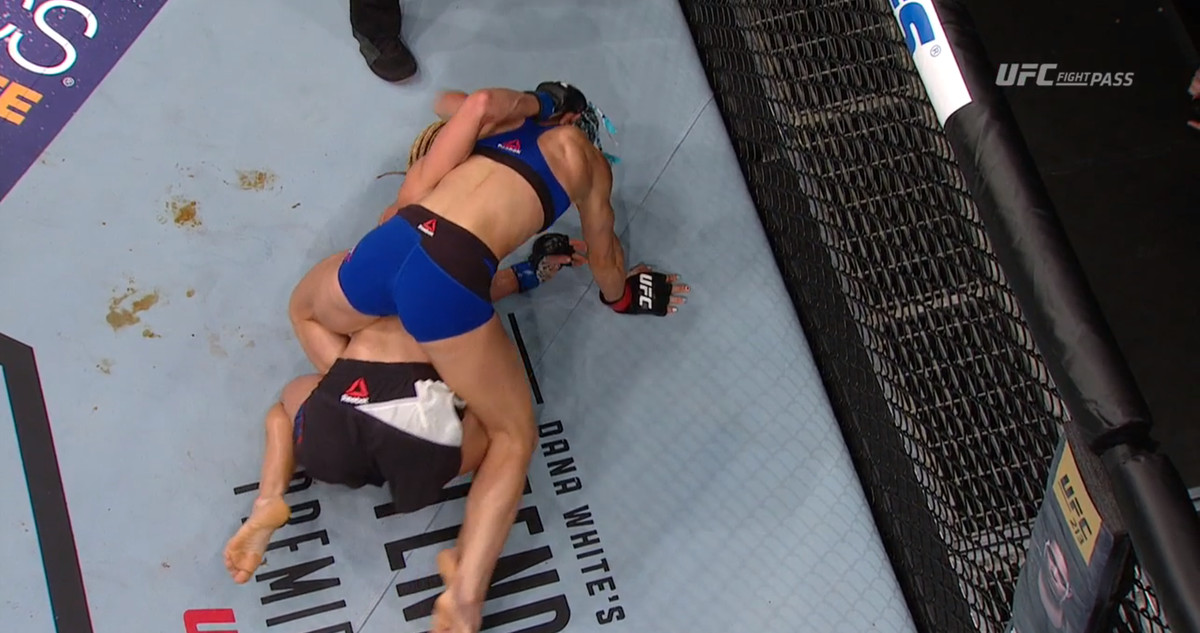 Майк Фридли, главный редактор Sherdog, веб-сайта, посвященного ММА (здесь), сообщил Рейтер по электронной почте, что Фокс использовала нокаут, известную как позиция тайского сливового клинча, распространенный прием в ММА, и сама Фокс была остановлена. техническим нокаутом цисгендерной женщины-бойца Эшли Эванс-Смит в том же году (здесь).