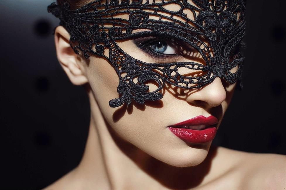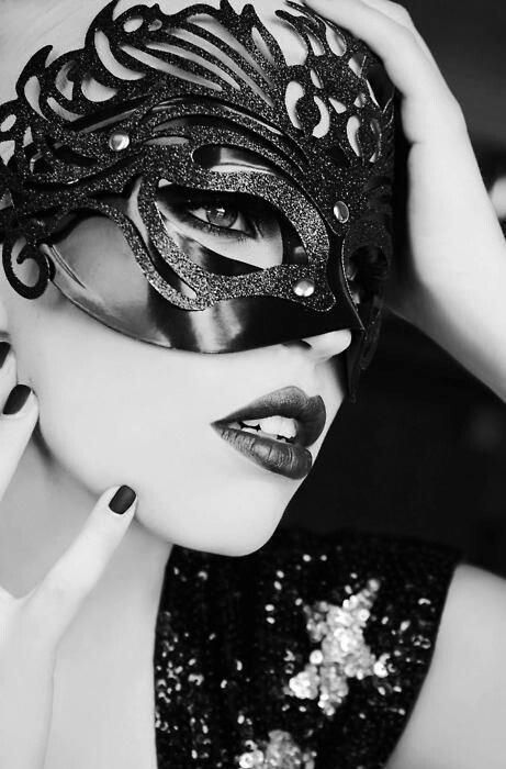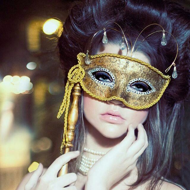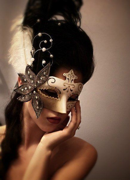 Подпись к фото,Маска и жемчуга были актуальным ансамблем в 1950-х