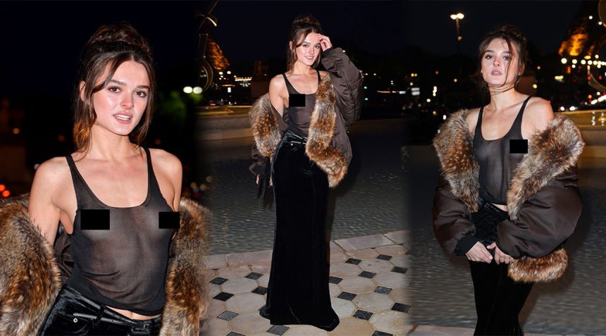 В соцсетях начали распространяться два снимка актрисы. На одном из них девушка запечатлена полуобнаженной и забрызганной какой-то мутной жидкостью, похожей на производимые мужским организмом после полового акта выделения.
