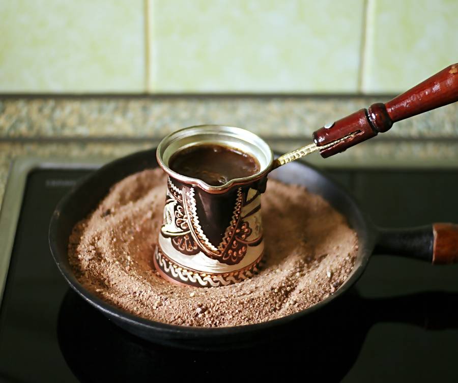 Турку можно готовить на почти любом нагревающем элементе. Это может быть плита газовая или электрическая, угли, печь, песок. Единственной проблемой может быть приготовление турки на индукционной плите, так как плита ее “не видит”. Просто подставьте под турку сковороду.
