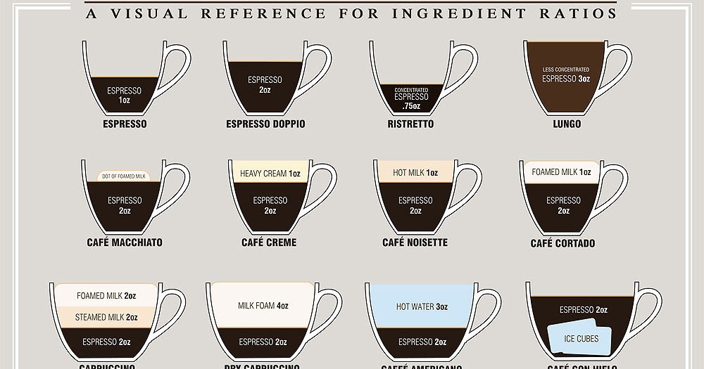 При соотношении 1:1:1 маленький капучино с одной порцией будет весить три унции, а капучино с двумя порциями — шесть унций.
