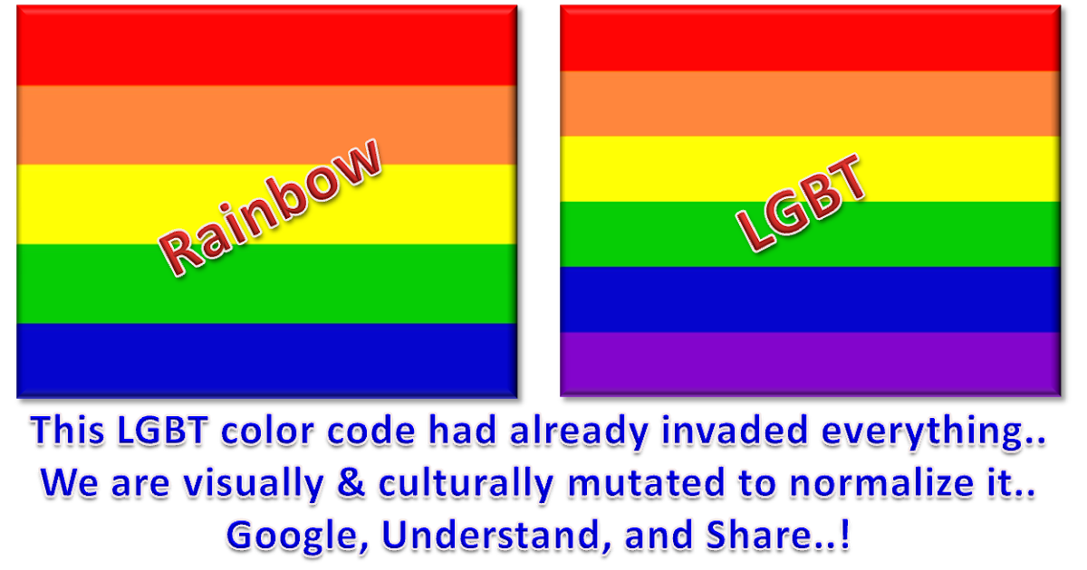 Итак, хотя флаг ЛГБТ можно назвать именем Божьего знака обетования всему человечеству, это НЕ настоящая радуга. В Божьей радуге всегда было семь цветов: красный, оранжевый, желтый, зеленый, синий, индиго и фиолетовый.