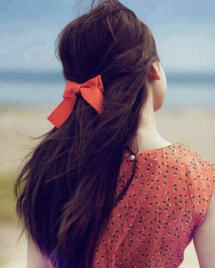 [ Фото ] красивая девушка позирует с красным бантом на волосах ( 1.