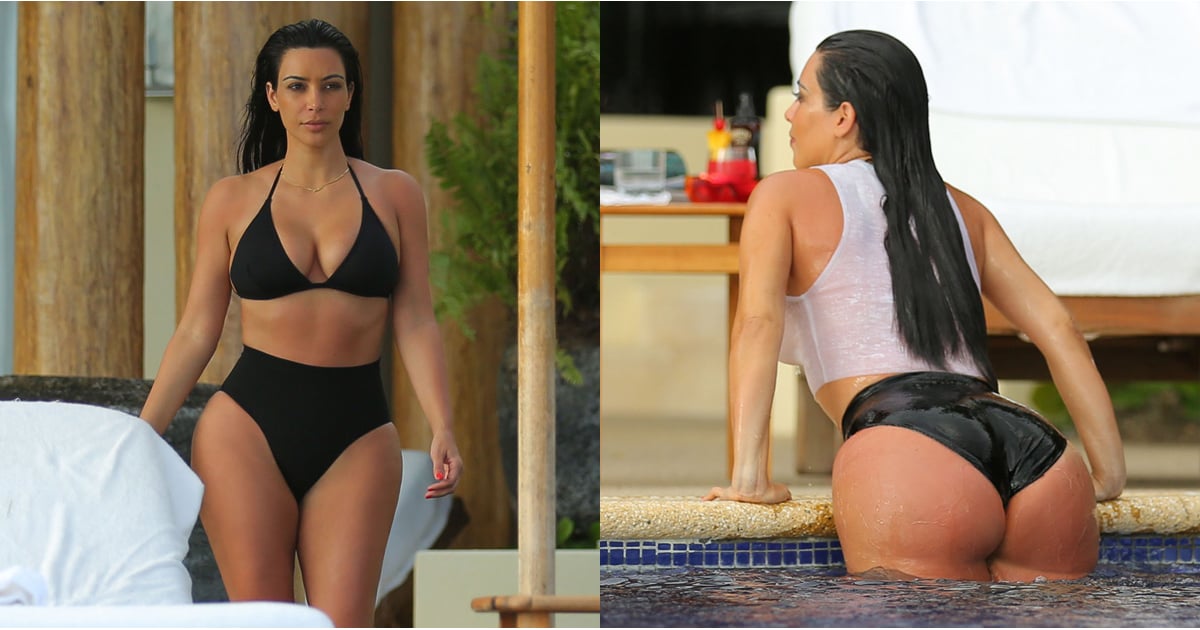 Невозможно оторвать взгляда от Ким Кардашьян на пляже, в вечерних и облегающих платьях. Ее внешность критикуют, но сама она считает идеальными свои лицо и тело.