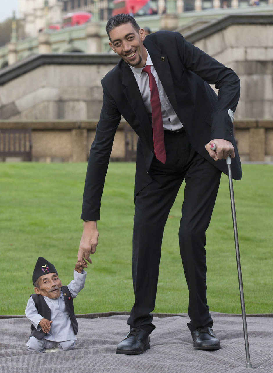 Посмотрите это видео, как самый маленький мужчина встречает одного из самых высоких людей, которые когда-либо жили: