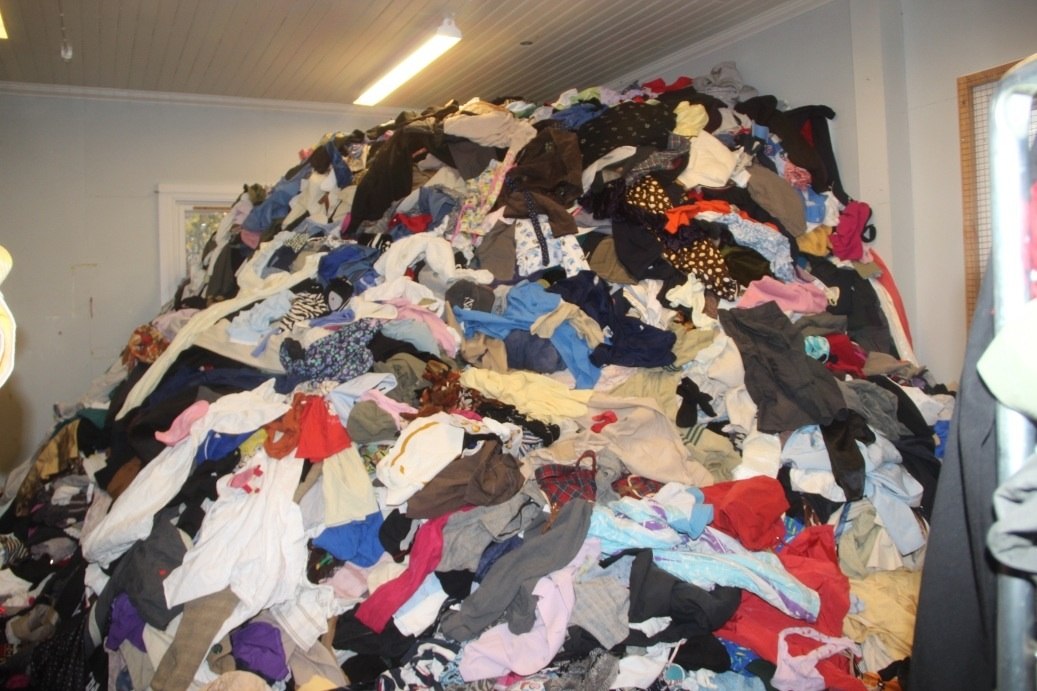 Женщина в куче одежды