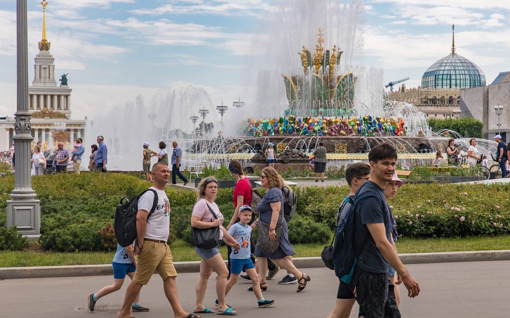 Ночью парадные здания ВДНХ озаряются яркими огнями, которые преображают всё вокруг. Красочная подсветка фонтана «Дружба народов» меняется несколько раз в течение часа. А вообще фонтанов здесь более двух десятков, так что наслаждаться зрелищем можно хоть всю ночь.