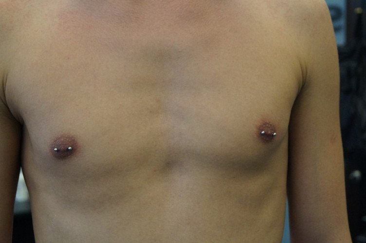 Это состояние вызывает образование пятен без волос на коже черепа, недоразвитые уши и отсутствие сосков или груди с обеих сторон.