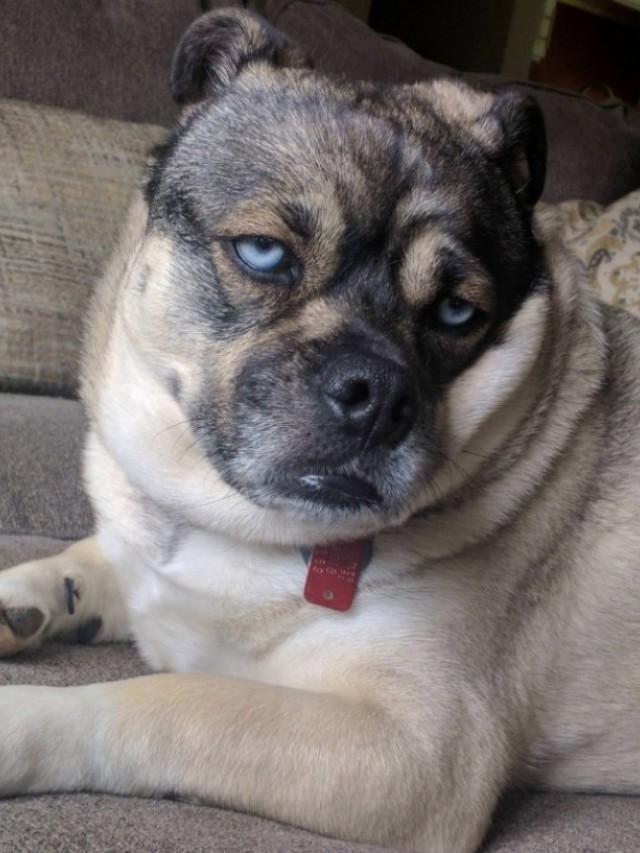 Скрещивание хаски и мопса также приведет к разным цветам и рисункам шерсти, что зависит от более доминирующих генов.