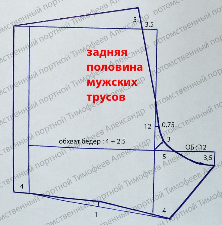 Раскрой трусов состоит из 2-х половинок: передней и задней части. Выкройка семейных трусов: