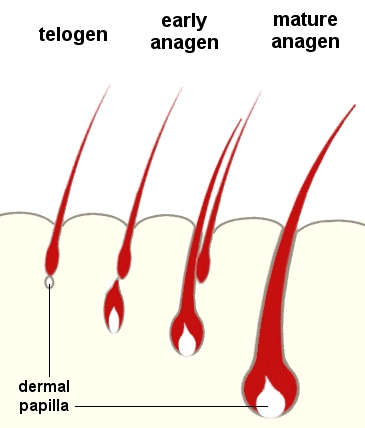 Во время фазы анагена основание волосяного фолликула набухает, как луковица, и начинает формировать волос. Это этап, когда pili multigemini происходит.