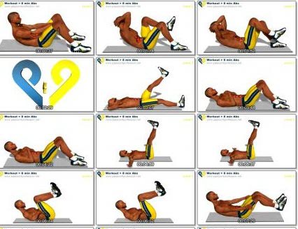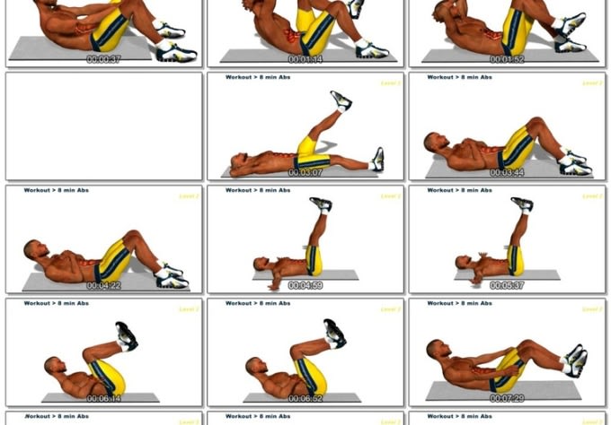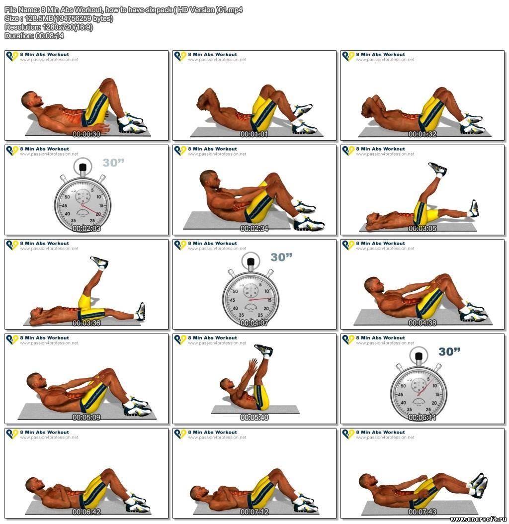 Этот 8-минутный комплекс проще предыдущего, так как состоит из менее тяжелых упражнений. Он должен отнять у вас около 8 минут, а тренироваться можно 3-4 раза в неделю даже в домашних условиях: