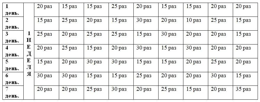 Конечно же, нельзя обойтись без физических нагрузок. В этот день мы будем выполнять 3 разных упражнения по 200 повторений в 2 подходах. То есть, вы делаете сначала одно упражнение в 2 подходах по 100 раз с отдыхом 1 минута. После этого отдыхаете 1 час и начинаете делать другое упражнение в этом же ритме. И так весь день.