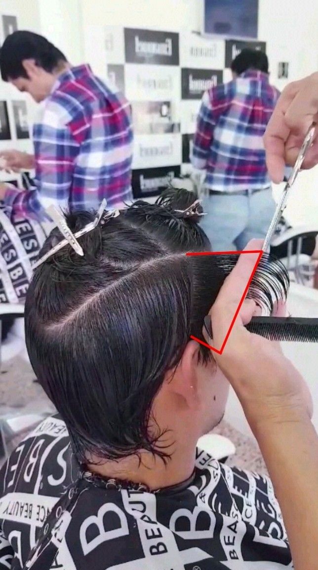 если у вас длинная стрижка машинкой с челкой, ее нужно состригать выше срединной линии лба.