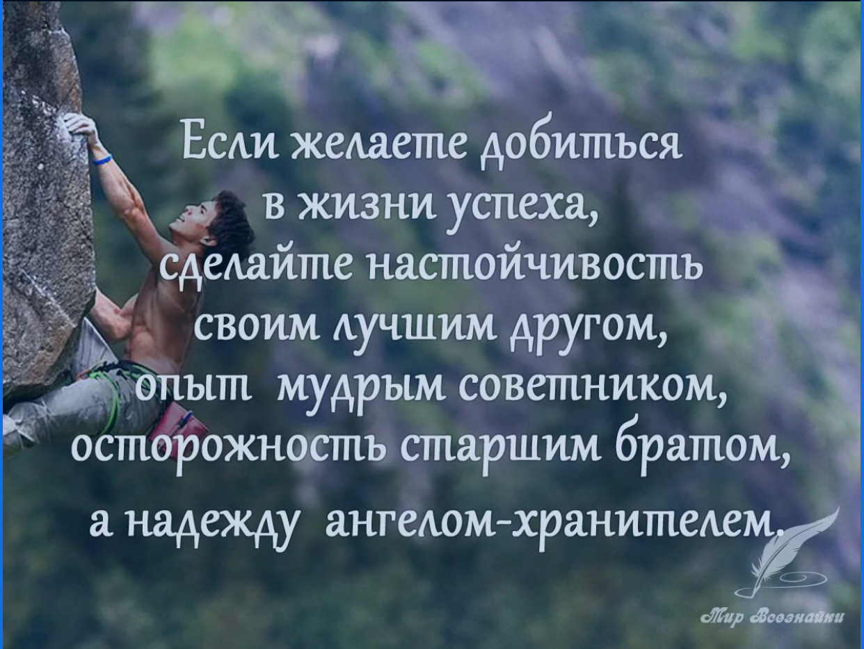 Подумайте, как может жить легко и счастливо человек с девизом: «жизнь – как лестница в курятнике. Короткая и вся в дерьме». Или что-то в этом роде. Лозунг всей своей жизни мы транслируем в осанке, разговорах с родными, в кабинете начальника. Мы проявляем его в поступках, действиях, а, главное – в мыслях . А мысли, они материальны.
