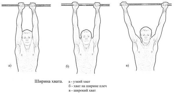 «Очень широкий хват сверху делает подтягивания более сложными, чем более обычный хват на ширине плеч, так как он задействует больше бицепсов, а также спины.»