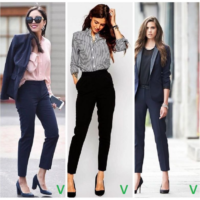 - Брюки-сигареты и брюки до щиколотки — другие варианты, которые помогут вам выглядеть стильно и эффектно.