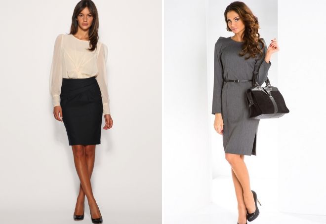 - Юбки-карандаш или слитные платья — другие интересные варианты. Однако следите за длиной. Правильная длина – до колена или чуть ниже колена.