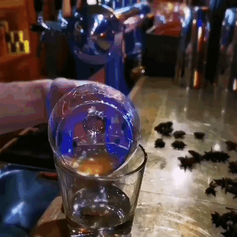 Через несколько секунд потушите пламя, накрыв стакан бокалом.