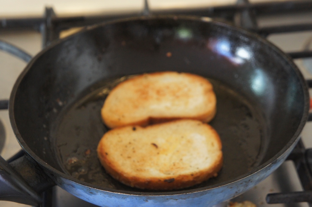 Обжариваем хлеб на среднем огне, с обеих сторон до румяности.