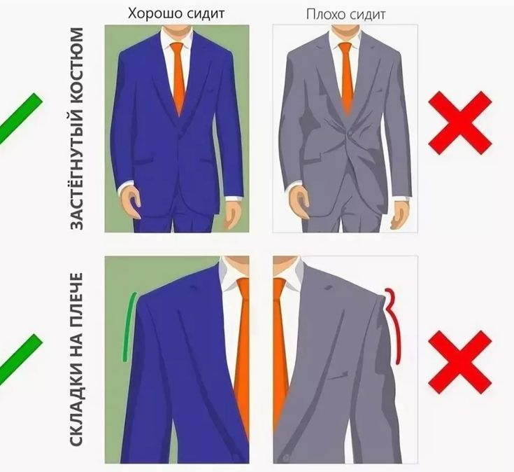 Средняя часть куртки должна быть максимально аккуратной. В идеале должно быть всего 2-3 дюйма свободного места, когда вы оттягиваете пуговицу от живота. Положение пуговиц (верхняя пуговица на пиджаке с 2 пуговицами или средняя пуговица на 3 пуговицах) — это самая узкая часть пиджака, и поэтому она должна быть выровнена с самой маленькой частью вашего туловища.