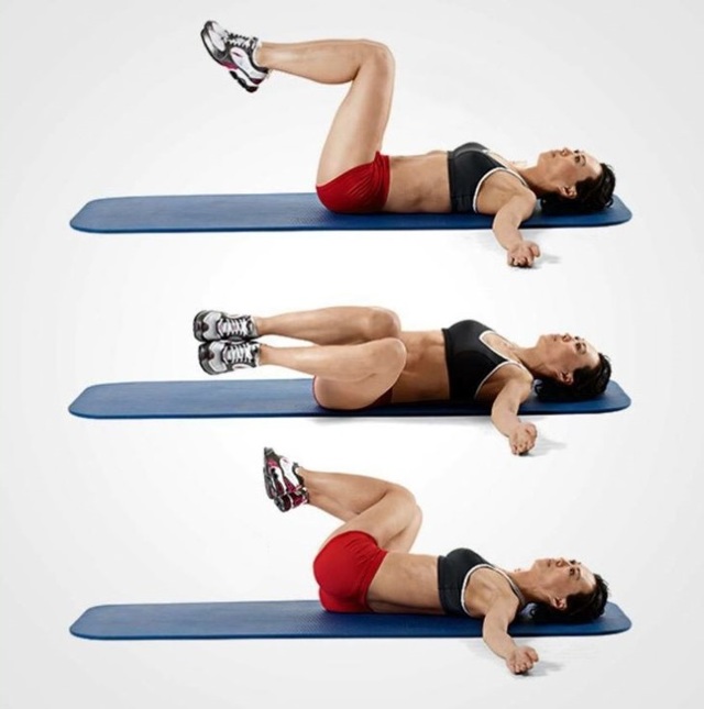 Старайтесь не расслаблять мышцы пресса. Выполнить 3–4 подхода по 15 раз.