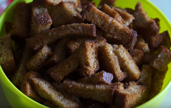 Это одна из самых недорогих и любимых закусок к пиву. Но не только с этим напитком их можно есть с удовольствием. Такие вкусные хрустящие гренки из черного или бородинского хлеба также могут дополнить суп, например, или какой-нибудь вкусный салат.