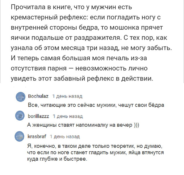 И вот она начинает пакостить, подбрасывая вам «пищу» для сомнений и бурной женской фантазии. Одна моя знакомая таким образом «пошутила» со своими друзьями, решив проверить их на прочность: будучи у них в гостях, подбросила в бельевую корзину в ванной свои трусики. Представьте теперь, что было, когда жена решила заняться стиркой. Хорошо, что «пошутившая» довольно быстро раскололась. И история эта закончилась хорошо.