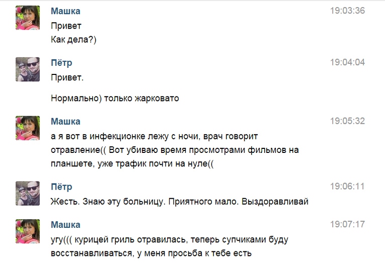 - Начни общение. Избегай стандартных «Как дела?», «Давай знакомиться!». Используй её профиль, чтобы зацепить и развести на фотку.