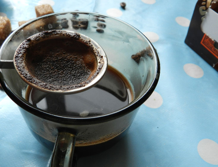 4 Пока молоко греется, процедить кофе через самое мелкое сито. Отставить кофе на время в сторонку.