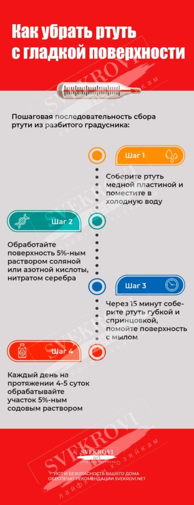 Как убрать ртуть от разбитого градусника в домашних условиях?