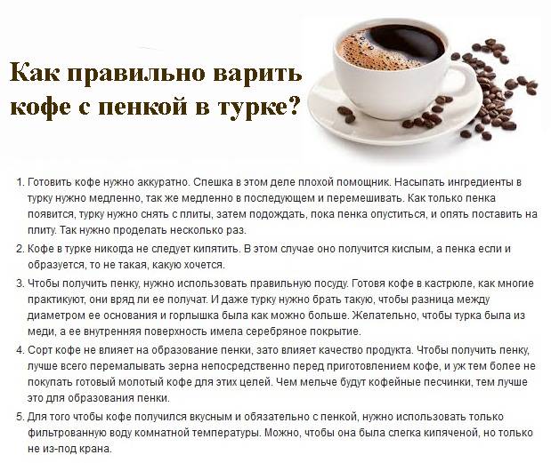 Количество пенки зависит от степени помола зерен. Чем он тоньше, тем больше пенки. Для получения густой, стойкой пенки напиток необходимо поднимать и опускать над огнем 6-7 раз. Огонь при этом должен быть очень медленным. Важно следить, чтобы жидкость не закипала, а сама пенка не переливалась через края. Мешать напиток в эти моменты не нужно.