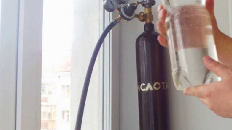 - Выключите газ и открутите крышку бутылки с карбонизатором.