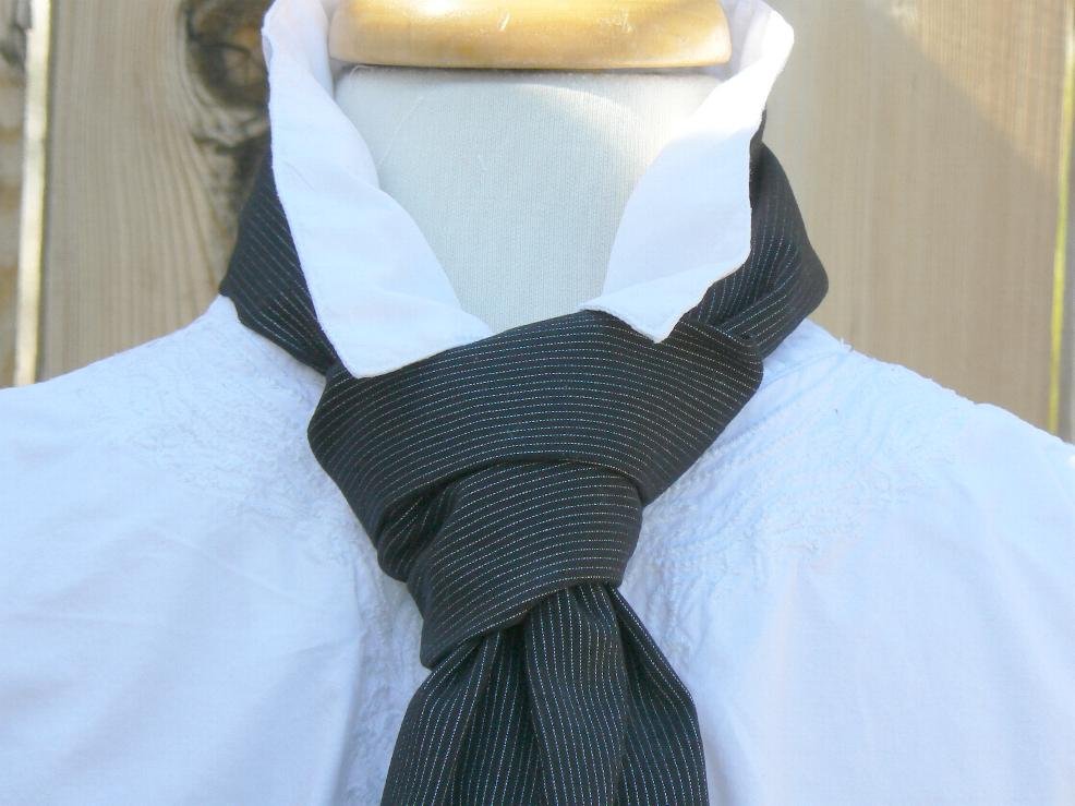 Впервые этот аксессуар появился в деревне Аскот в Англии. В то время на скачках такое украшение считалось признаком хорошего тона. Это своеобразный скачковый аксессуар. Представлял он собой полоску полотна, срезанную наискосок. Завязывался на шее и закреплялся жемчужной брошью. - Футляр. Представляет собой отрезок красивого полотна с шириной 10 см и длиной 100 см. раньше его обвязывали несколько раз вокруг шеи и закрепляли узлом. Сейчас это достаточно демократичный аксессуар, который можно носить под пиджак и брюки.