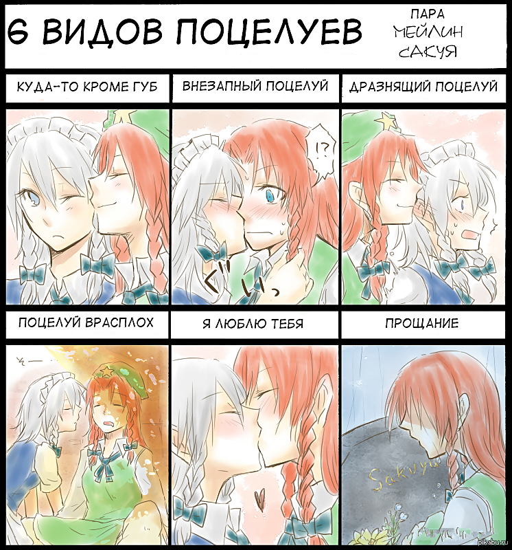 1. Французский поцелуй. Выражает страсть. Иногда встречается у пар с солидным стажем, сумевших сохранить бурлящие чувства.