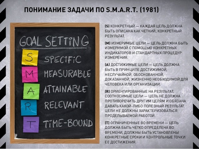 Не волнуйся. Вы всегда можете увеличить свою цель, когда начнете достигать большего.Необычные цели дают экстраординарные результаты, так что вам нужно быть смелым. Однако для эффективной постановки целей SMART вы также должны убедиться, что ваша цель реалистична. Реалистичные цели — это те, над достижением которых вы готовы и можете работать, и которые могут быть достигнуты путем улучшения ваших нынешних привычек. Как напоминает нам бизнес-гуру Джей Абрахам: «Вы должны знать, что вы пытаетесь сделать, почему вы пытаетесь это сделать и каковы ваши навыки». Ваши цели не имеют смысла, если они не основаны на вашей реальности прямо сейчас. Независимо от того, ставите ли вы бизнес-цели или ставите личные, слова Абрахамса звучат правдоподобно.