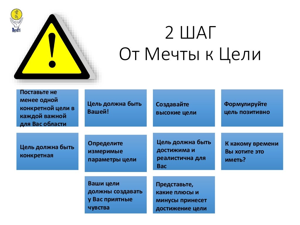 Цель должна быть а) четко сформулированной: б) понятной; в) достижимой; г) проверяемой: д) конкретной.