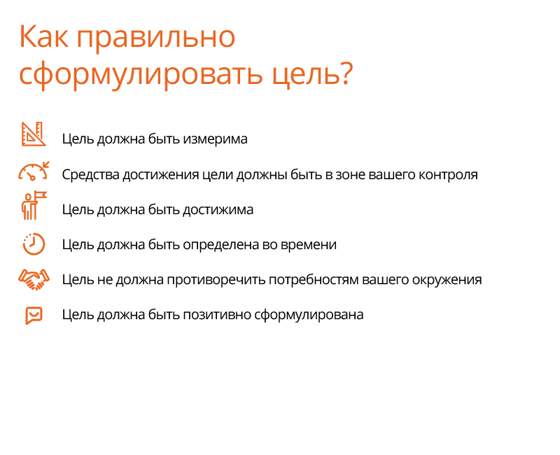 Вы заметили, что в определении постановки целей мы использовали слово «процесс». Все потому, что постановка целей — это системная работа, которая требует структурированного подхода.
