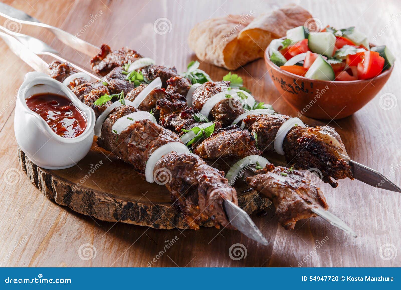 Самый распространенный вид шашлыка — это маринованная баранина или говядина, приготовленные на вертеле, называемые «шашлык» или написанные по-турецки как şiş.Вместе с ними иногда готовят овощи, из которых типичные овощи включают баклажаны, помидоры, болгарский перец, лук, соленые огурцы и грибы.